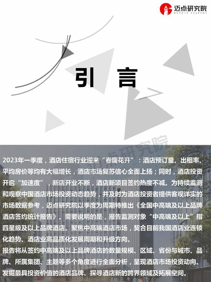 2023年一季度,伴随文旅市场的复苏振兴,中高端及以上品牌酒店签约城市遍布东西南北中的76个市县,各地迎来一轮文旅酒店项目投资签约热潮。