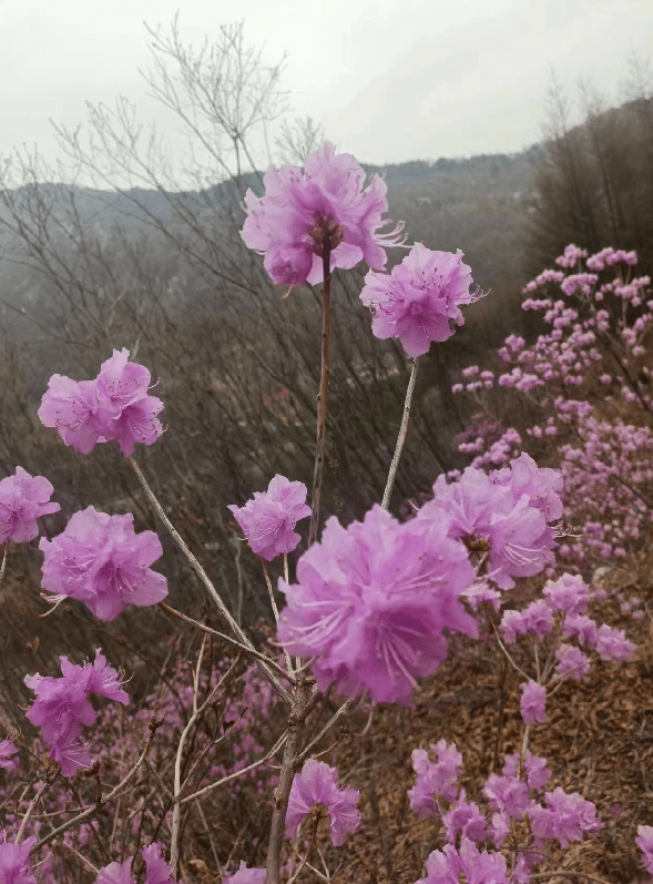 群山初见绿 风舞杜鹃红 每年4月,位于庄河市大营镇的歇马山上,漫山遍野盛开的野生杜鹃花格外烂漫,令人陶醉,吸引了众多游客前来赏花。
