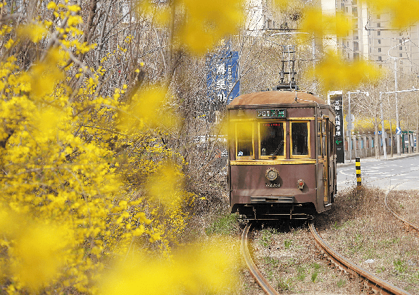 时下的大连,春花盛开,整个城市化身为一个浪漫、梦幻的世界,一个电车站,也能成为赏花的一个经典。这里是201路电车海之韵公园站,又一个可以打卡的最美车站,黄色的连翘,红色的榆叶梅,粉色的山桃花阵阵飘香,201电车驶入其中,远观近闻,芬郁醉心,自然与历史,就在这里静美地展示。201路有轨电车具有百年历史,在花海中穿梭行驶,犹如童话世界般梦幻,让我们坐上它,一起邂逅大连的浪漫吧!
