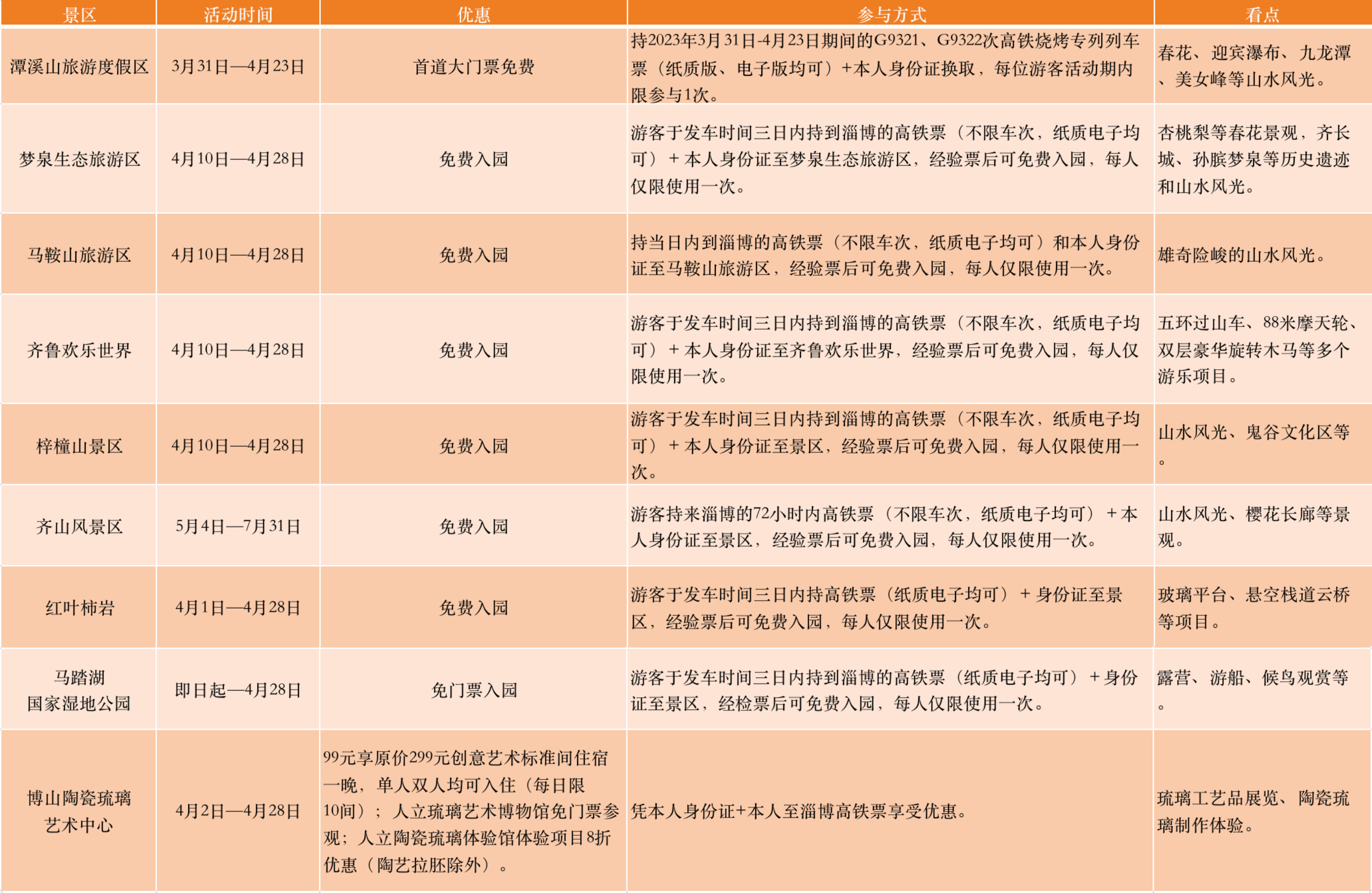 不管你从哪里来,只要凭借目的地是淄博的高铁票,就可以持本人高铁票和身份证免费兑换领取多家景区入园门票,如潭溪山旅游度假区、梦泉生态旅游区等。吃完烧烤,不妨坐上公交车去感受淄博的秀丽山水与厚重文化。