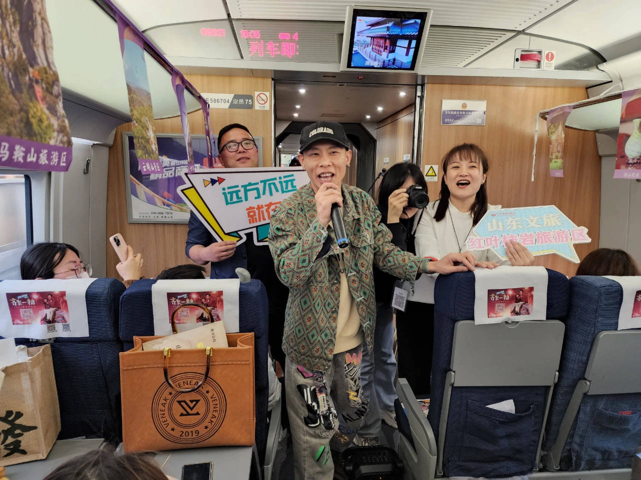 在这两趟烧烤专列上,根据网友大量的路透显示,不但有淄博烧烤和齐文化的相关宣传展览,还有烧烤酱、苹果、山楂、扑克牌和各种各样的体验餐券免费提供给游客。有乘坐烧烤专列的网友形容称:“上车空着手,下车兜着走。”