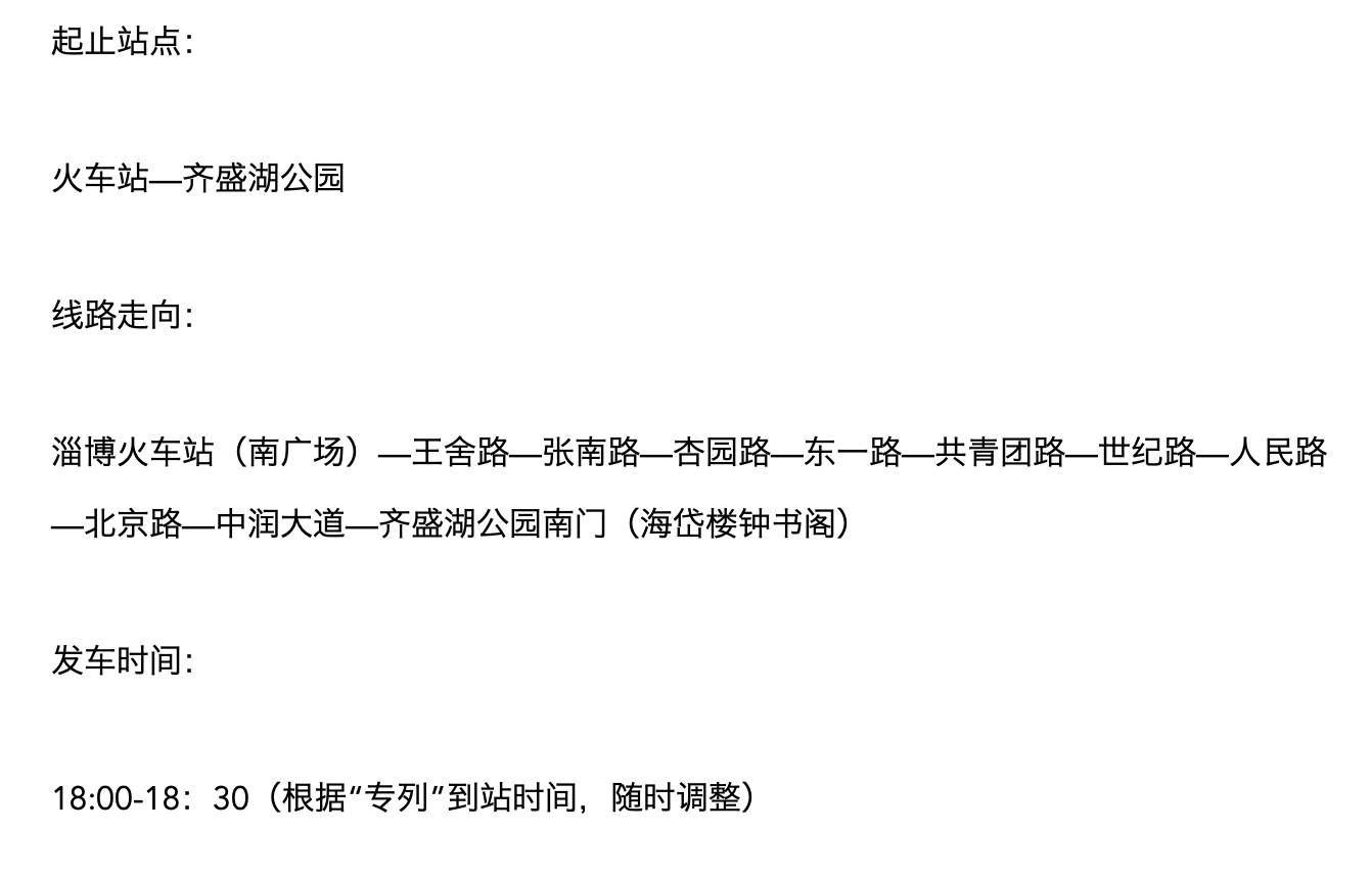 抵达淄博站以后,游客可从淄博站南广场出站,这里有六辆公交用作接驳,发车时间将根据高铁到站时间随时调整。接驳车覆盖万象汇商超、八大局市场、尚美第三城、蛮王烧烤、日出日落烧烤、旺旺大串烧烤、小寒羊烧烤、水晶街、吴氏烧烤、正味烧烤、齐盛湖公园、海岱楼钟书阁等网红打卡地。另外,主城区42条常规公交线路覆盖33家烧烤店,还专门新增了21条定制专线。淄博市政府新闻办公室此前召开新闻发布会表示,“五一”前后还会举办淄博烧烤节。