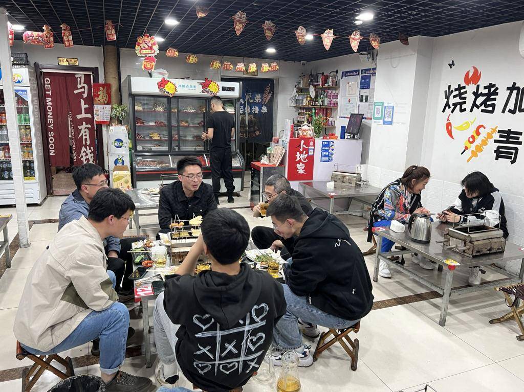 另一家位于台东六路的烧烤店同样也很火爆,店内设计简约大气,许多年轻人坐在小马扎上喝着啤酒、吃着烧烤,营造出热闹的就餐氛围。店长高女士告诉记者,这家店已经开3年了,每年开春都是烧烤生意复苏的时候。“我家店里能摆20多桌,最近生意不错,营业额能翻一番了。”高店长对记者说道。