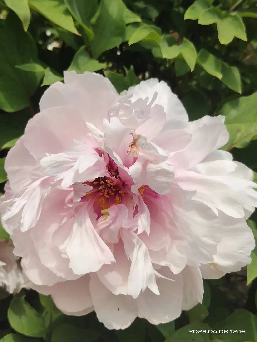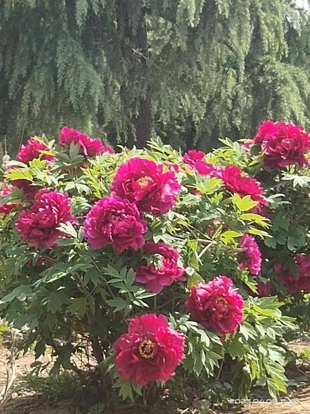 当然,这只是一个美丽的传说,但洛阳的水土适宜牡丹生长却是事实。我不由得想起二〇〇八年五一假期去洛阳的经历。牡丹的花期很短,通常只有十天左右,且大多盛开在四五月份。可能因为那年天气较为暖和,花期提前,等我赶到洛阳时已经到了牡丹开放的尾声,只在公园里看到几株即将凋谢的牡丹。可惜脑海中念念不忘的“姚黄”、“豆绿”、“墨池”、“二乔”无缘得见,不免引为遗憾。即便只是零星几朵,亦可一窥它的国色天香了。其后,俗事缠身,一直未能再去洛阳看一看牡丹。一晃十五年过去了。今天,在家门口的牡丹园再睹它的风采,有种故友重逢的欣喜。只盼再有机会去一趟洛阳,看一看“一城之人皆若狂”的牡丹。