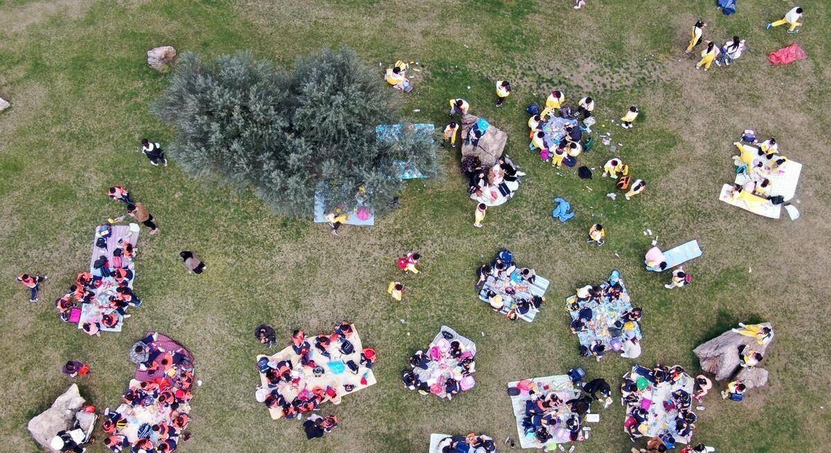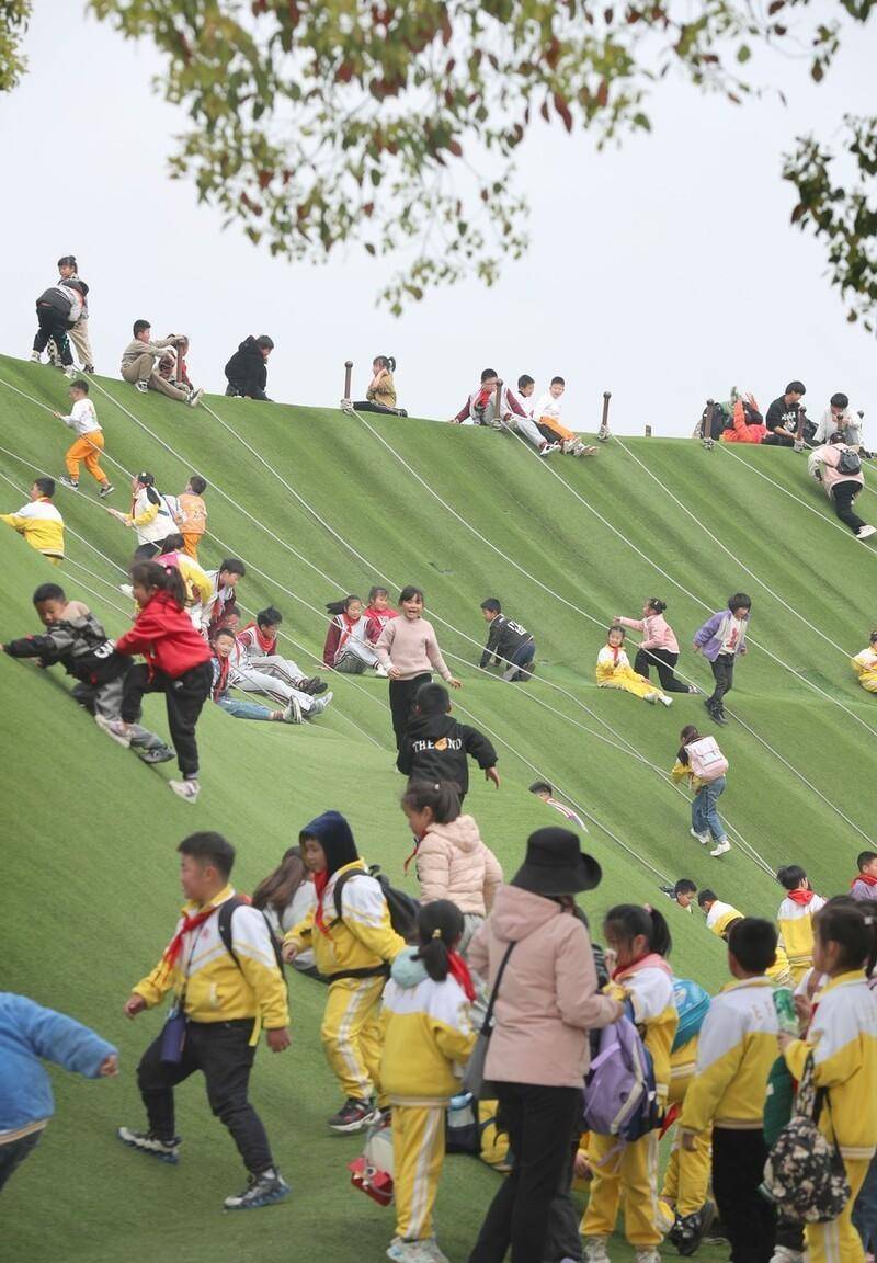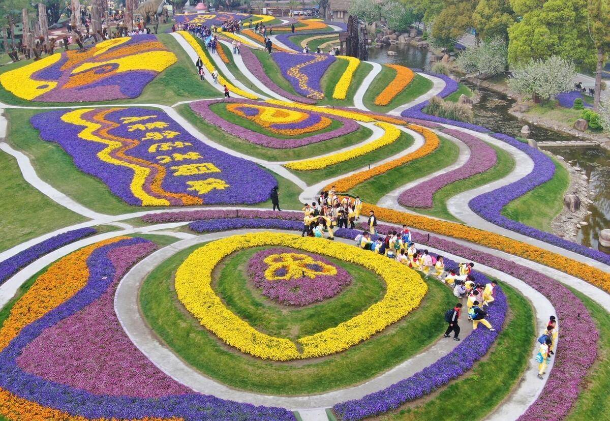 2023年4月7日,数千名小学生来此感受春光,欣赏美景,开心体验久违的户外活动。园内从高处看梯田花海,就像彩色的大海波浪 一般连绵起伏,颜色泾渭分明。到处生机勃勃,万紫千红,漫山遍野的花海,气势磅礴,漫步其间,美不胜收,让人心情舒畅。