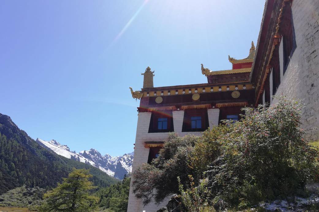 稻城的早晨,阳光明媚。只是一夜入“冬”,有些寒冷。