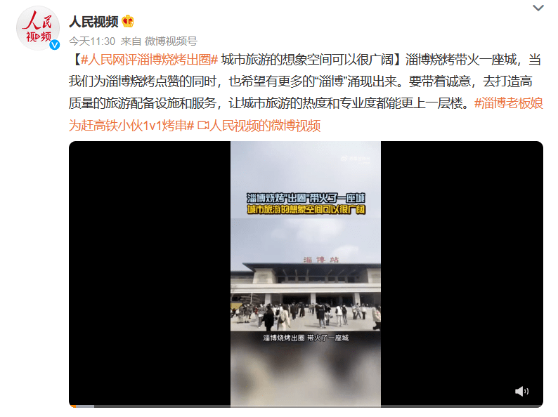 人民网评淄博烧烤出圈:城市旅游的想象空间可以很广阔。