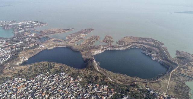 想要到元山矿坑,最好的方式就是自驾或者骑行,直接导航到元山村停车场公交站台,到了停车场沿着马路一直走到尽头然后左转,走到附近的农田里,你就能看到一个矿坑形成的人工湖泊。在矿坑的左手边有个绝壁,爬上去之后,你就可以看到元山的两个矿坑。如果从高空看,这两个矿坑就像是太湖边的一副眼镜,颇有意思。