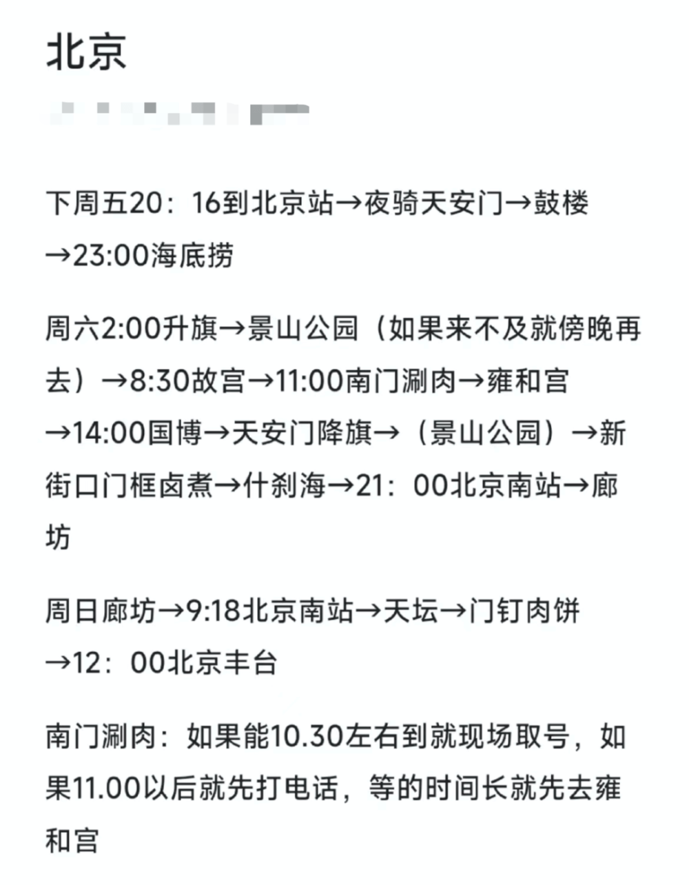 由于时间紧、景点多,“特种兵式旅游”在行程安排上精确到了分钟,从出发到返程,每段时间都“物尽其用”。