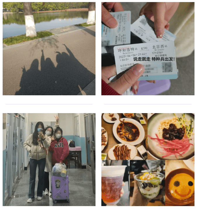 夜晚拖着行李赶车,在人口涌动的街头吃美食,黄昏下和好友拍照,去看书里读到过的景色……虽然旅途的过程疲惫,却是青春里一段美好的记忆。
