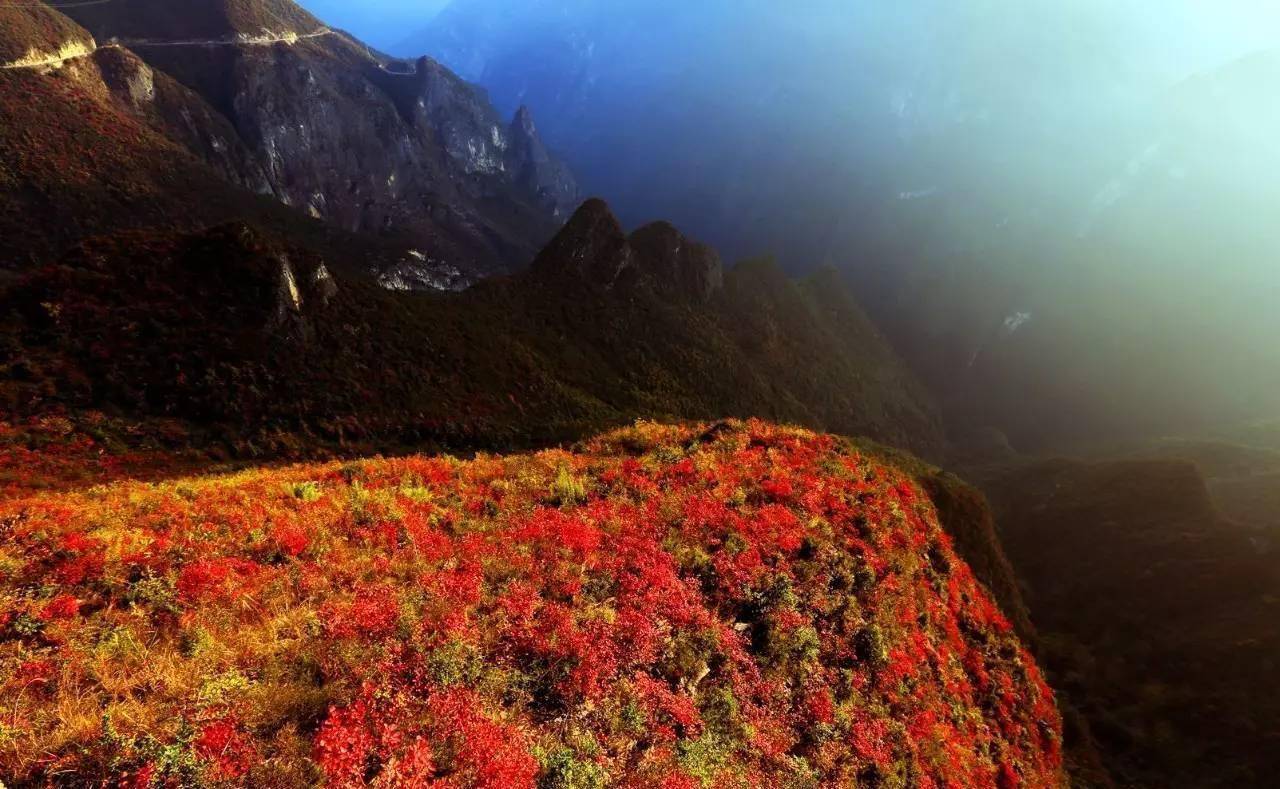 尤其在这里红叶繁茂的时候,整个兰英大峡谷就像是一个童话世界,远远望去就可看到整体的峡谷中飘满了红叶,随风起舞,再伴随着整个绿色山峦的映衬,红绿相间。所以这里又被人们称为是重庆的第一深谷。最高的深度大约有24000米,游客都说来到这里不由得就想吟诗一首。