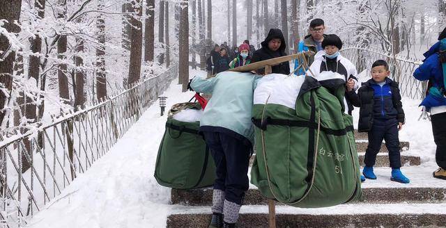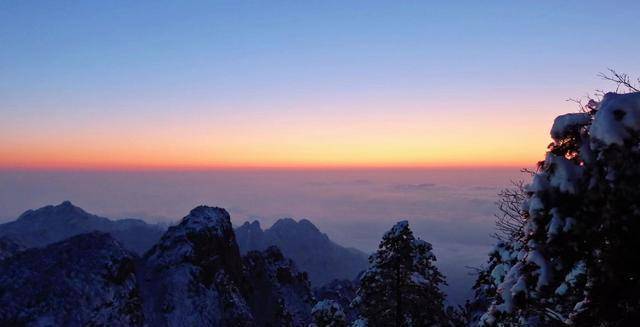 在爬山的过程中,还可以买一根迎客松的雪糕吃吃,大雪天里吃着迎客松雪糕爬着黄山,氛围感十足!当然,如果你觉得累,可以坐着轿子上山,每公里150到几百元不等。在到达光明顶的时候,终于看到了一小片的蓝天,这也预示着晚霞应该很漂亮,只不过我到了酒店就睡着了,没看到比较可惜。