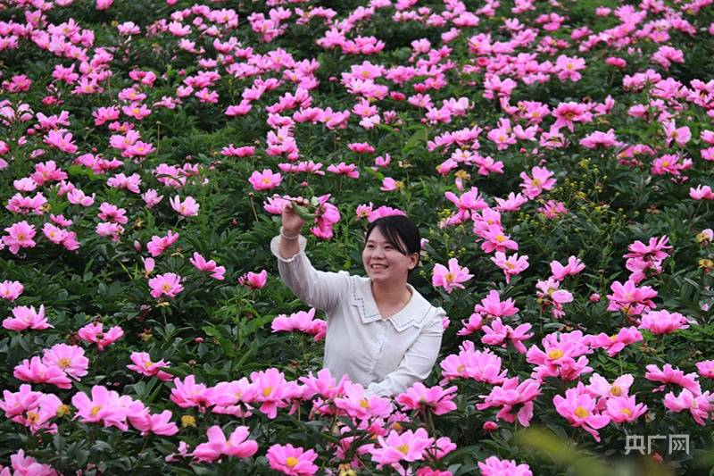 游客在芍药花海踏青观光(央广网发 杨晓明 摄)