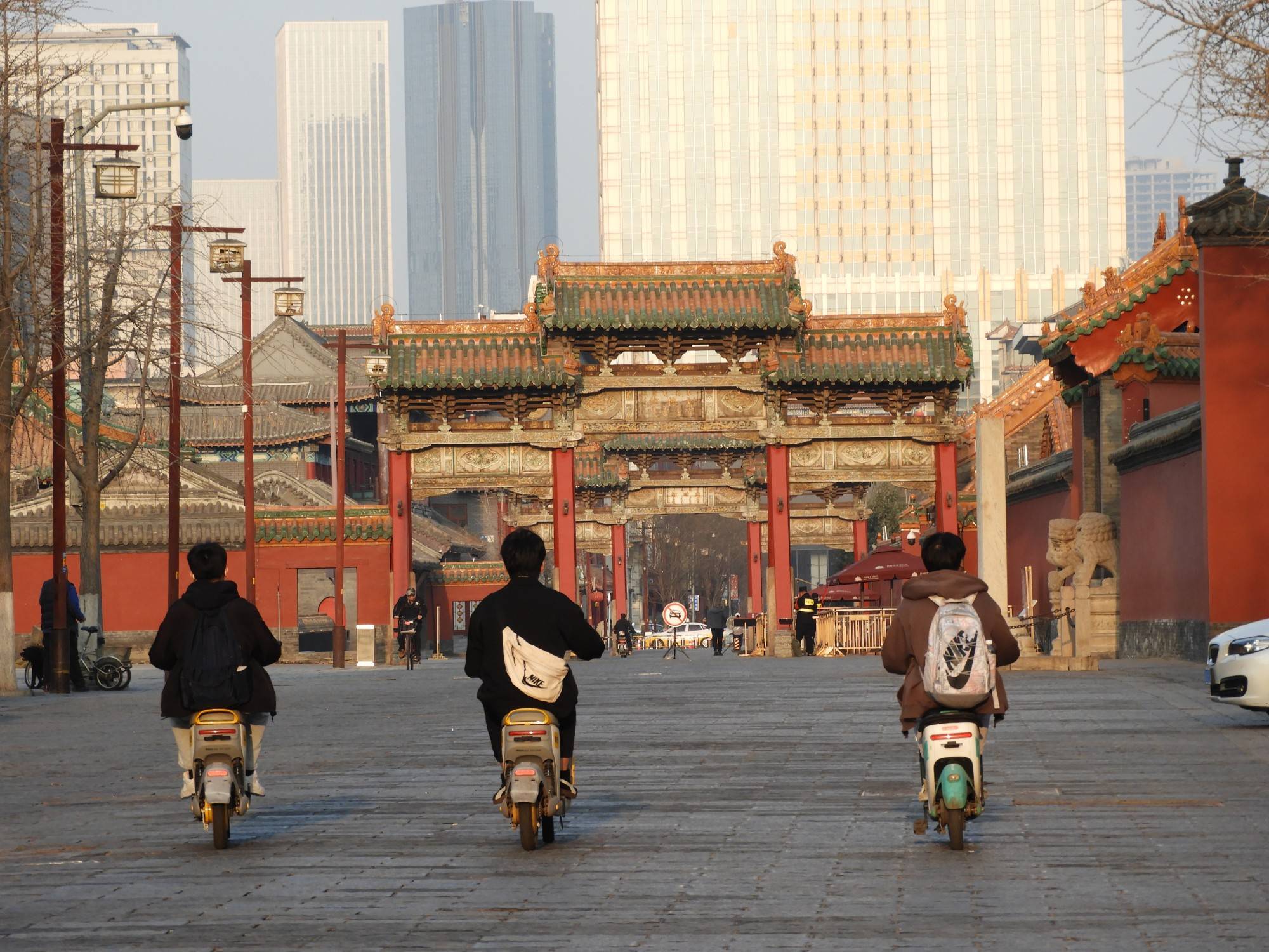 林师剑用手机记录下在沈阳大街上骑单车的同学(央广网发 受访者供图)
