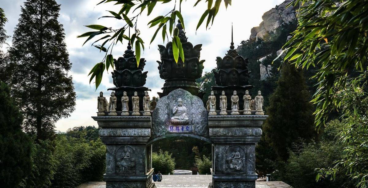 而继续沿着环海公路行驶大约4公里,便来到了崂山华严寺。这是现在崂山中仅存的一座寺庙了,这里虽然同样也是依山傍海,但不是必去景点,时间充足的话,还是可以前去拜拜,上面的古树石狮、五彩莲花、塔园还是可以看看的,其实上面也是一些银杏树,秋季的时候来这里拍拍照还是可以的。