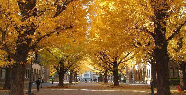 从赤门往北走300米左右,才是东大的正门。从这座建于1912年,由伊东忠太设计的正门进入,这条东大的主要干道被称为“银杏并木通”,每到秋末,转黄的树叶就会将这条道路化为金色的隧道。