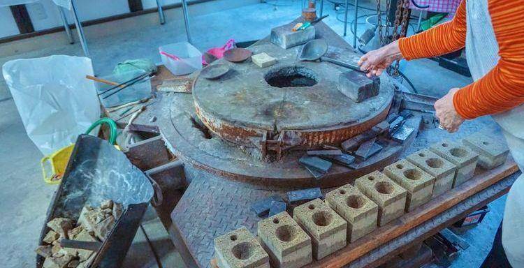 据说,体验课程的内容会定期有改动,有的时候更是每天都会换上不同的铸物主题,但是当中也有比较常出现的铸物项目,例如纸镇、风铃、筷子托和杯子等。精通铸物技术的老师傅会在从旁提供指导与协助,让旅客能顺利地制作出独一无二的自家作品,从中体验铸物工艺的乐趣。