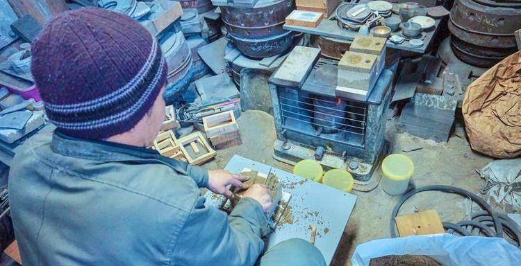擅长各种技法的工匠就隐藏在街巷各隅,有些职业人的铸物历史更是悠久,比如这间名叫“铸物工房利三郎”的铸物小店,从明治时期传承至现在已有150年历史,专门制作传统的双型模铸造物。在“铸物工房利三郎”中的每一件商品都是纯手工制作,俨如独一无二的存在,为了方便铸物师工作又或提供铸物体验,利三郎采用前铺后工厂的方式营运,甫进店内是摆放着琳琅满目铸物工艺品的展示与售货区域,而走进店内深处则是神秘的铸造工场,参加铸物体验活动的来客便会在场内进行体验。