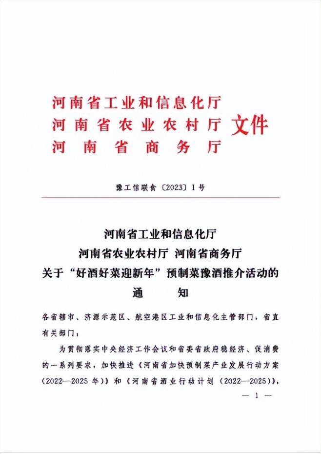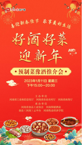 《通知》指出,为贯彻落实中央经济工作会议和省委省政府稳经济、促消费的一系列要求,加快推进《河南省加快预制菜产业发展行动方案(2022—2025年)》和《河南省酒业行动计划(2022—2025)》,持续扩大河南预制菜和豫酒的影响力,河南省工业和信息化厅、河南省农业农村厅、河南省商务厅决定联合省内预制菜和豫酒骨干企业,在春节前夕举办“好酒好菜迎新年”预制菜豫酒推介活动。
