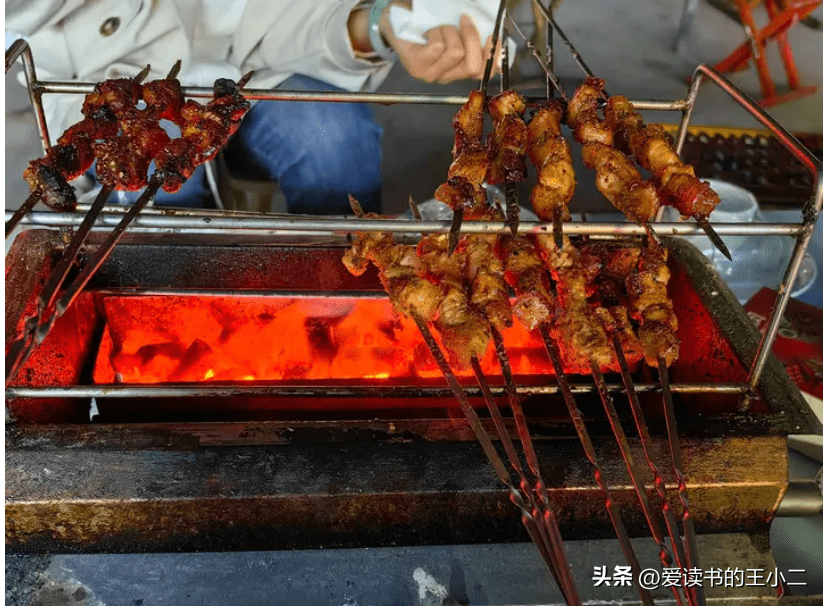 服务员都是手里拿着烤好的一大把串儿,四处溜达。