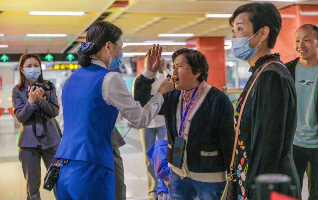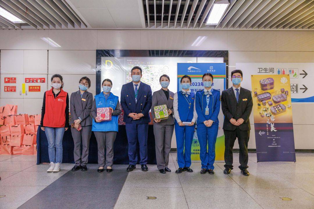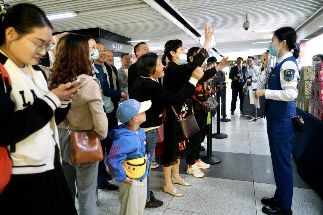 工作人员现场为乘客介绍金河宾馆和糖酒会,宣讲乘坐地铁文明安全出行等涉及知识,并进行互动问答,回答正确即可获得精美礼品一份。