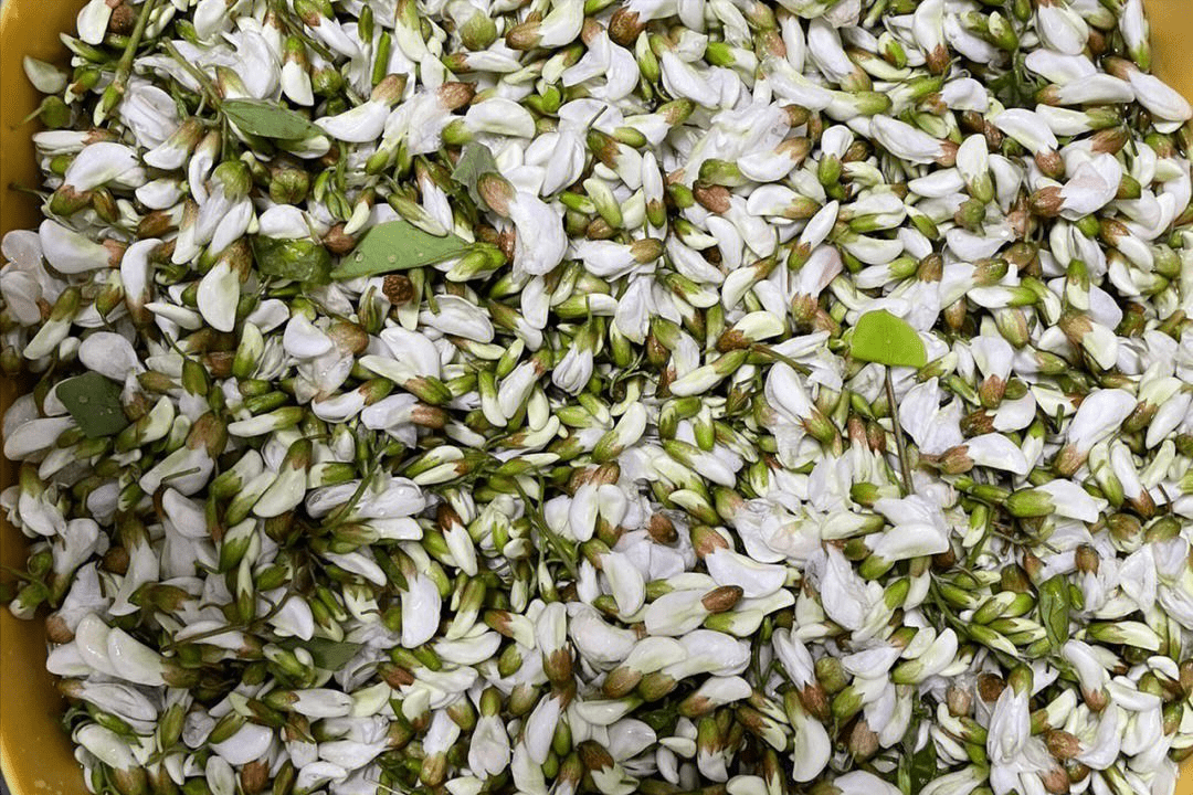 槐花麦饭,一款地道的陕西特色小吃。每年槐花将开未开之际,人们就会三五结伴,去采摘这些含苞待放的槐花花朵。挑拣好的槐花,仔仔细细清洗干净,用开水烫一下,再沥干水分。接着加上面粉、洋芋丝等搅拌均匀,上锅蒸20分钟左右,便做成了一顿槐花麦饭。