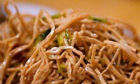而且热干面既不同于凉面,又不同于汤面,过冷和过油后,淋上芝麻酱、香油、香醋等配料。喜辣的还可以添加辣椒红油,面条爽滑有筋道,酱汁香浓味美,色泽金黄油润。