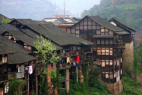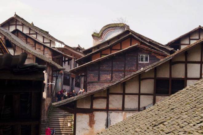 整座古镇,依山而建,绕水而立,三街八巷,全长2480米,建筑面积3.832万平方米,占地0.4平方公里,由古民居与“三宫八庙”等共同组成。小镇上的穿斗房架、悬山屋顶、小青瓦屋面、青石板街道等被誉为“中国山地建筑的精华”。
