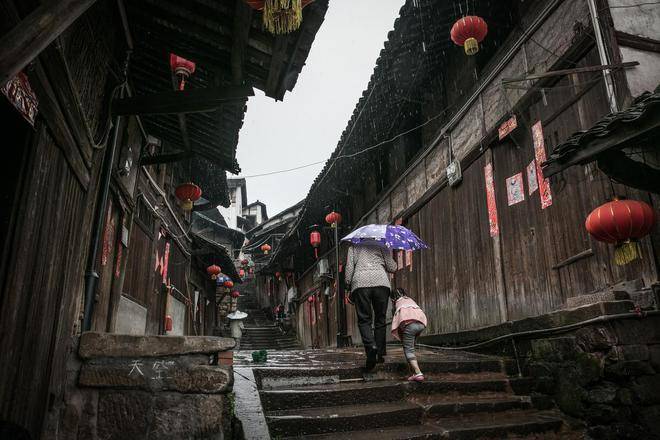 泸州福宝古镇,整座古镇上的老民居房屋全部都是依山傍水修建,在房屋的前沿河流交汇,房屋的四周则是青山叠嶂,整个小镇上完全没有大城市里面的灯红酒绿,在这里更没有城市街头的人声鼎沸,冷清和烟火气是佛宝古镇最真实的样貌。