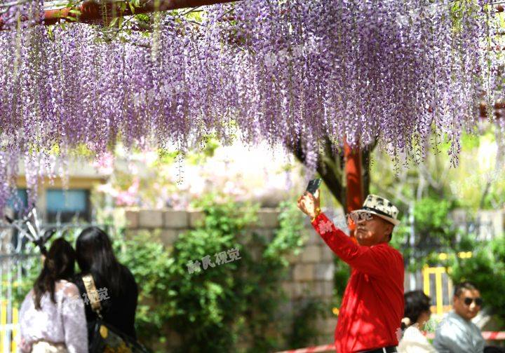 新民晚报讯(记者 杨洁)步入四月,市民喜爱的“紫色瀑布”如约而至。在嘉定紫藤园内,紫藤烂漫舒展,一串串花朵从木架倾斜而下,绚丽春景吸引大量市民游客前来游园赏花。据悉,今年园内紫藤的盛花期为4月15日-23日。