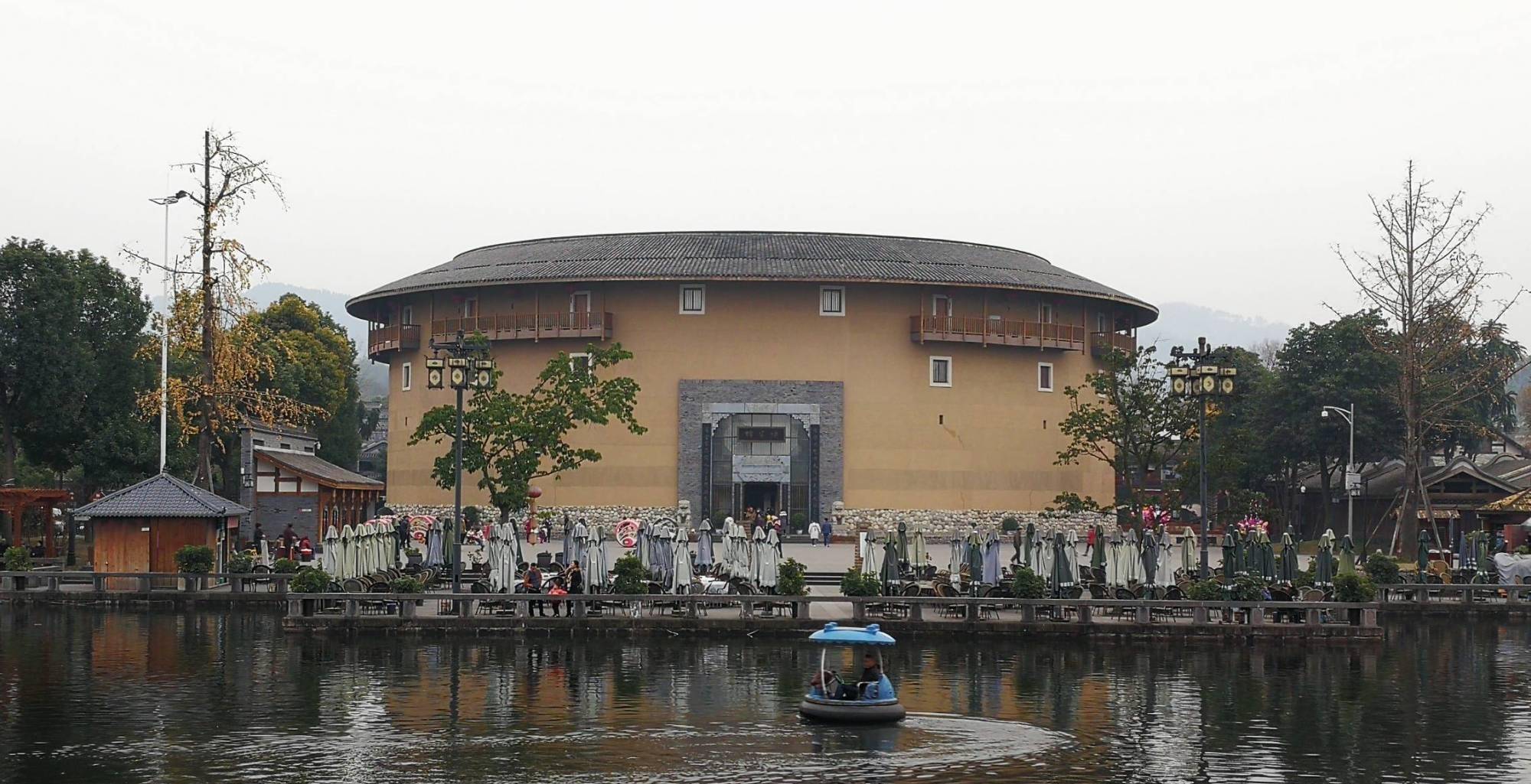 客家的土楼早就闻名于世,洛带也有一座客家土楼博物馆,不用去福建就可以看到《大鱼海棠》里的土楼。土楼博物馆分为四层,外形为一个圆形,是由夯土建造,结构严谨,博物馆一楼内还展示了客家人各种生活用品,包括泥塑,竹编等非物质文化遗产。二楼诉说着的是客家人是如何发源,如何迁居到此,如何发展。三楼是客家文化的传承,讲述了迁居此地之后的发展史。四楼则是办公区域。