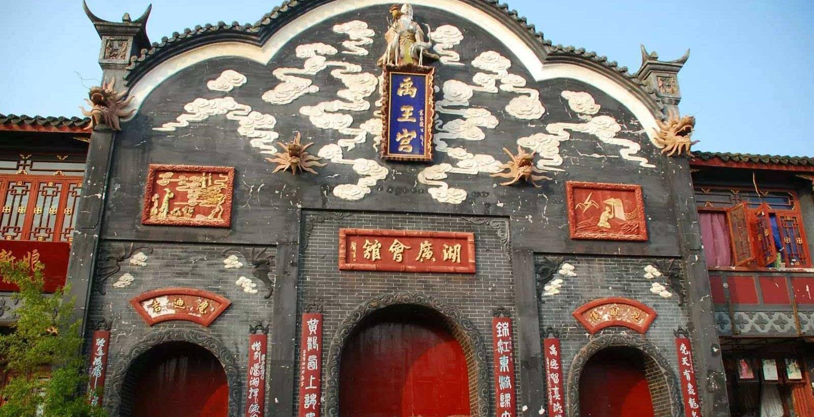 广东会馆的位置在古镇上街,是在清乾隆时期建造,总占地面积三千多平方米,是由山门、前庭、中庭、后庭和左右两侧的厢房构造而成,也是国内保护最为完好规模宏伟的会馆之一。江西会江西会馆在中街,它还有一个名字叫“万寿宫”,面积两千多平方米,也是在乾隆时期建造,是由当时的江西客家人捐建,是一座四合院式建筑,有大小戏台、牌坊、居民府和前中后三殿。湖广会馆与其他两座会馆也是同一时期修建,比他们早了一些,因为供奉大禹,这里也叫“禹王宫”,牌坊、耳楼、戏台、前殿、后殿和左右两侧厢房……为主要建筑。