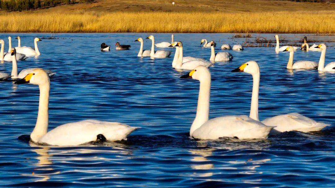 作为全区候鸟的主要迁徙地,锡林郭勒盟适宜的气温、良好的水体和丰富的食物,使其成为候鸟理想的迁徙“补给站”。据初步统计,目前已有数千只苍鹭、灰鹭、雀鸭、天鹅等鸟类在此栖息驻足。