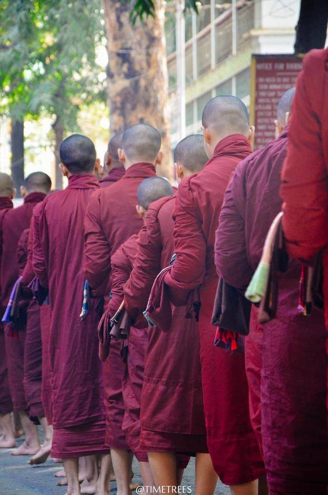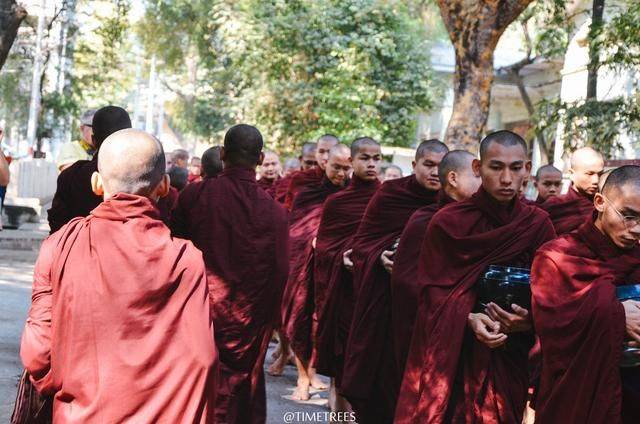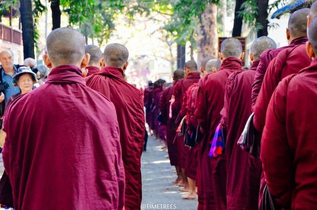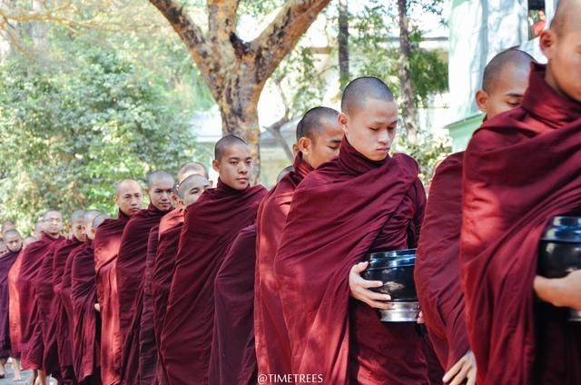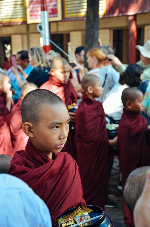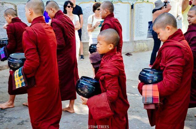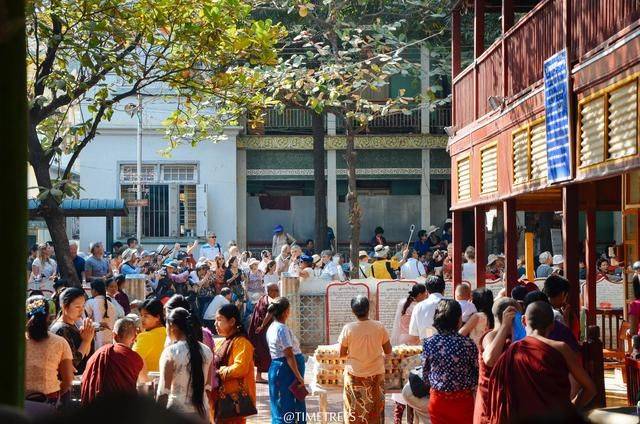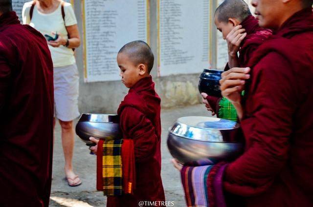 该僧院常年有1000多名僧侣,甚至有时达到2000人。所有的费用都由国内外的慈善机构或人士捐赠,因此被称作是世界上最幸福的僧侣。虽然缅甸是一个没有荤素限制的小乘佛教国家,但僧侣们仍要严格遵守“过午不食”的戒律,每天只吃两餐。游客们来到马哈伽纳扬僧院,最吸引人的就是中午10点的“千人僧饭”。