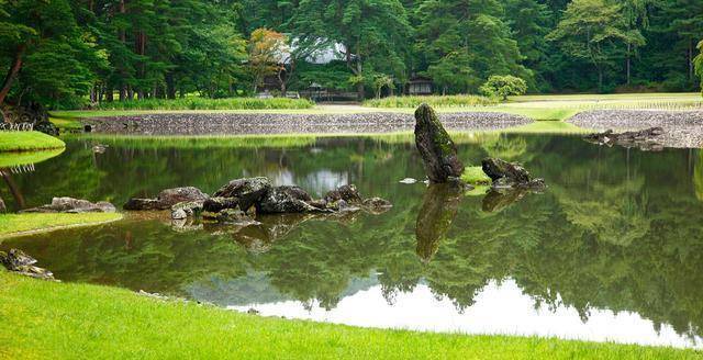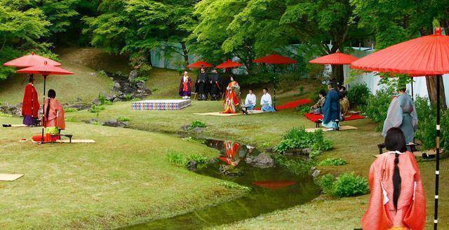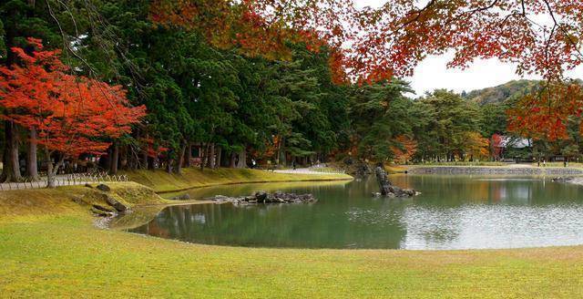 而将水引入池中的水渠,则是全日本唯一现存的平安时代遣水遗迹,在每年5月的第四个星期天,毛越寺都会举行“曲水之宴”的活动,类似于中国的“曲水流觞”,一群人一边作诗一边喝酒,也颇有意境,作为将日本最古老园艺书籍《作庭记》的思想及技法传承至今的珍贵庭园,在历经了800多年的今天,“净土庭院”依然与周围的树木景观相辉映,呈现出与当时丝毫未变的美丽。