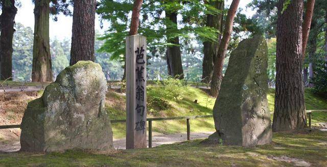 从山门前往本堂的途中,在一个不起眼的地方,有几块石碑,上面是日本“俳圣”松尾芭蕉亲笔书写的一句俳句“夏日草凄凉,功名昨日古战场,一枕梦黄粱”,旁边则是《菊与刀》作者新渡户稻造翻译的英译版“The summer grass- It is all that's left of ancient warriors dreams”。1689年,松尾芭蕉来到已经衰落的毛越寺,感慨奥州藤原式曾经的繁华和义经主仆的命运多舛,于是写下了这句俳句。