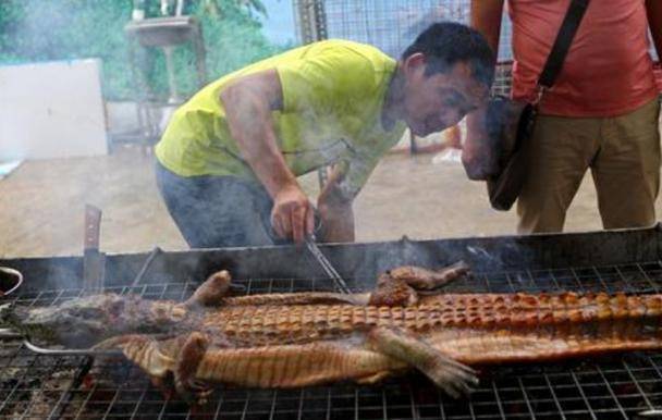 丛林中还有一种让人闻风丧胆的动物鳄鱼,在非洲的街头上,直接沦为了烧烤摊上的烤鳄鱼,但由于个头惊人,所以中国游客一般都会好奇花上几美金品尝一块。