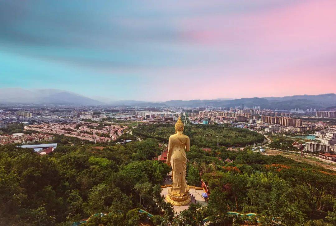 这座隐在繁华商业区里的静谧之塔,有着美好寓意:塔高66.6米,寓意一江( 澜沧江)连六国;塔四面四个朝向,则代表中泰老缅,寓意汉傣一家亲。