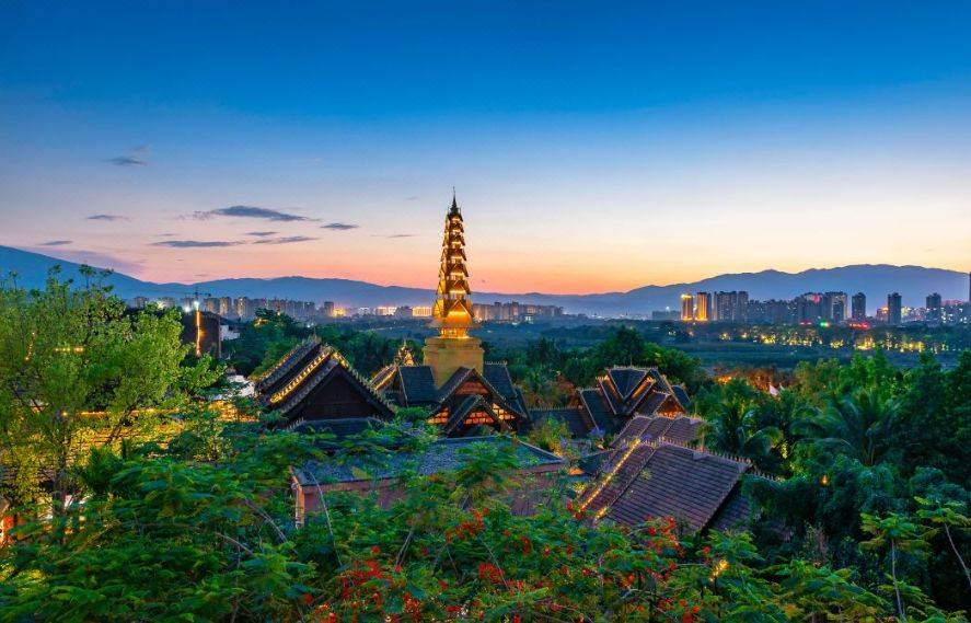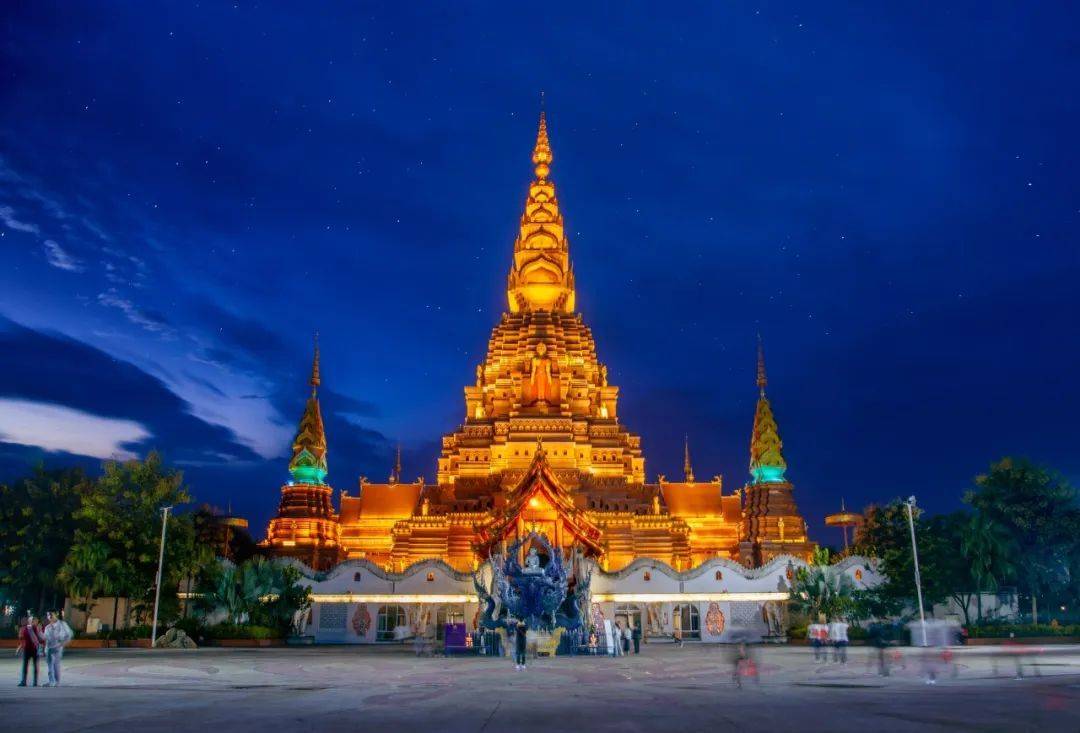 星光夜市边上的景洪大金塔也是必打卡的西双版纳地标之一。这座东南亚异域风情的佛教建筑,白天与夜晚是两种不同的视觉震撼。