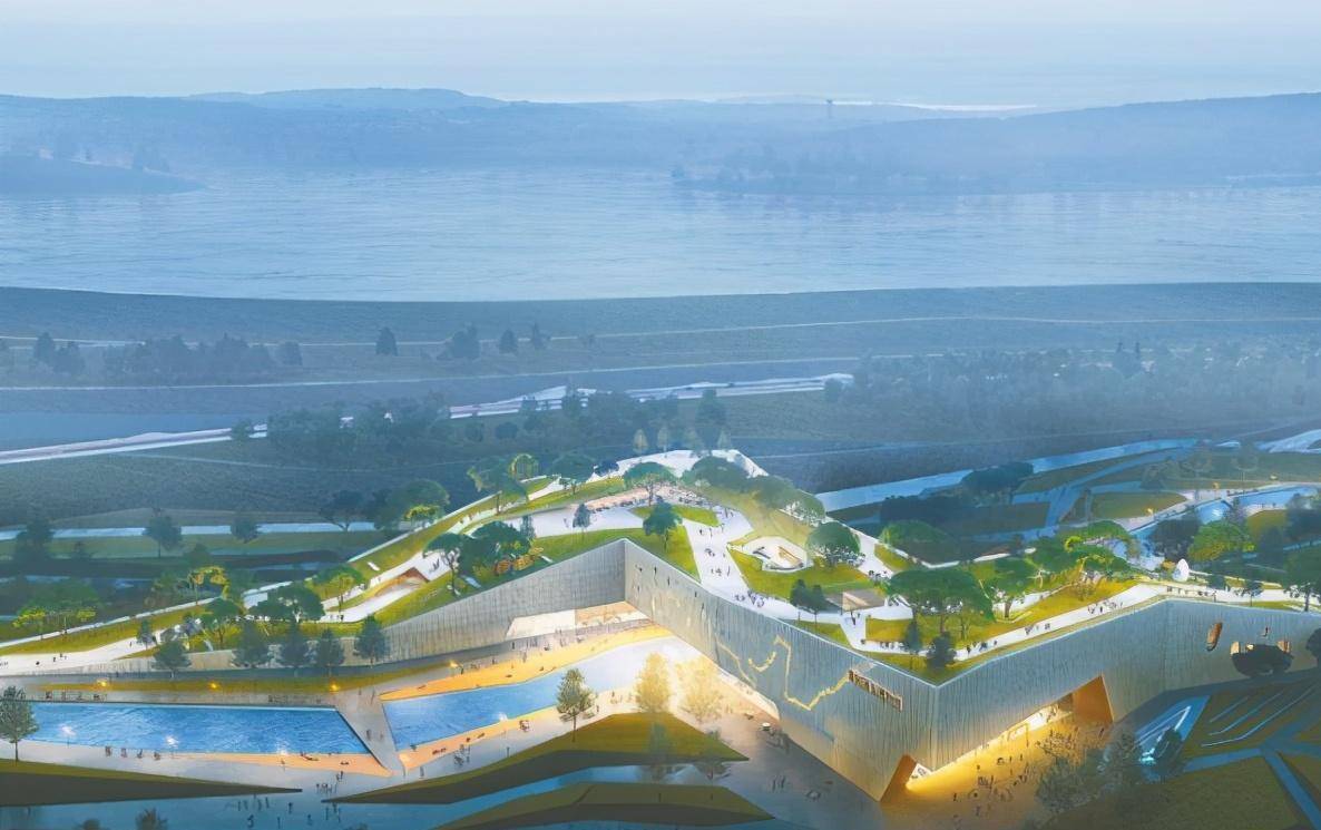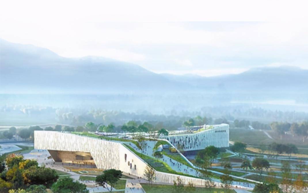 既然是博物馆,那么,它在设计方面也应该有所讲究,此处在设计时注重外观和自然景观的结合,其流线型的外观,曲折多边形的建筑体量缓缓起伏,然后整个主体都像是经由“堤岸山峦”孕育出来的“磐石”,其建筑外形好看又大气。