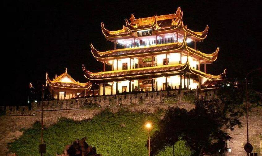 天心阁是长沙古城仅存的一段古城墙上的城楼,如今被列入了天心阁公园内,始建于清朝乾隆年间,距今将近400年,天心阁附近还有一座牌楼——“崇烈门”,建于1946年,是为了纪念在抗战时期长沙三次大会战中牺牲的将士。