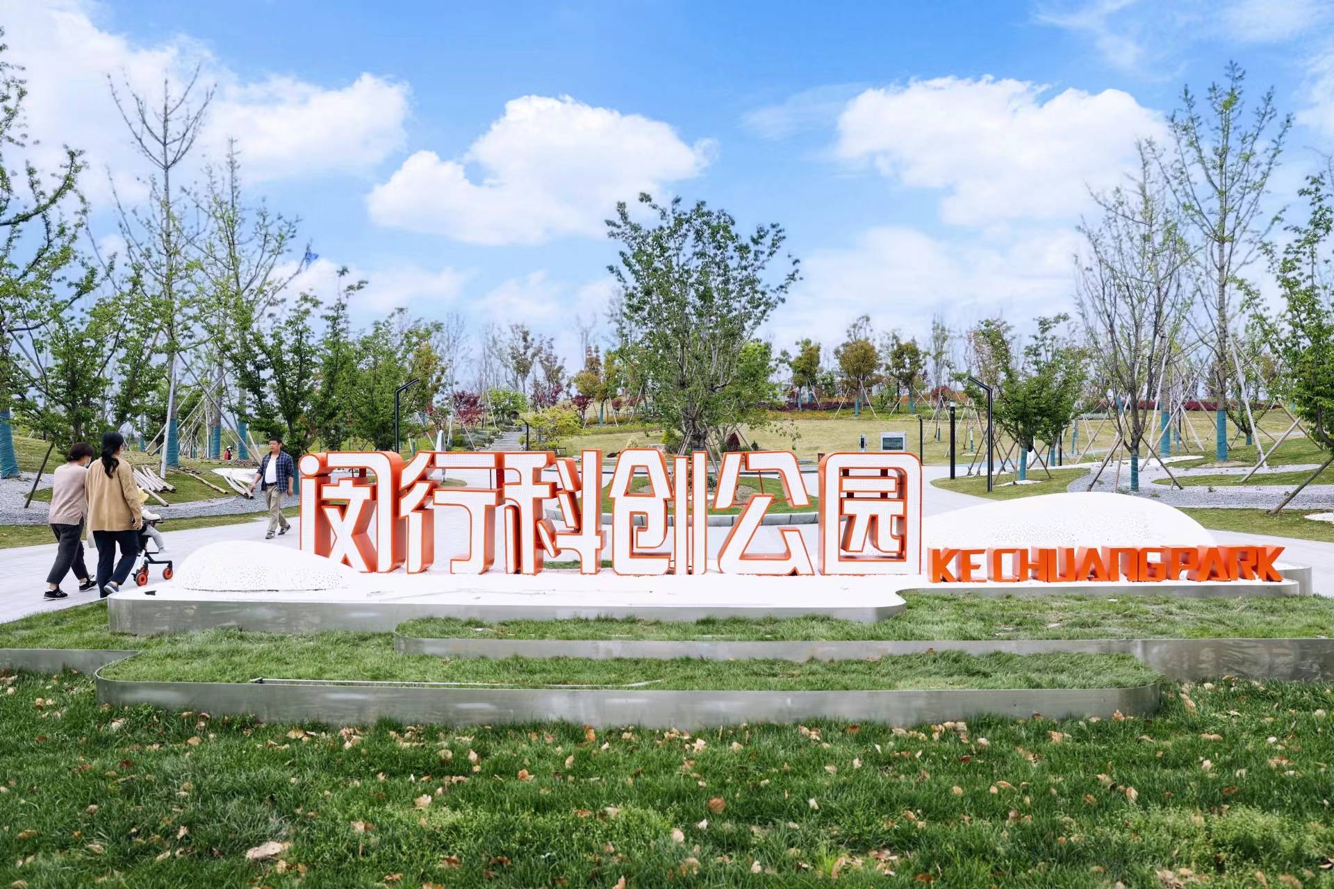 位于剑川路靠近中春路的闵行科创公园近日开放了。闵行科创公园占地面积近22.6万平方米,以现代生态山水为特色,不设围墙,24小时开放,打造以运动游憩为主功能的彩叶植物主题特色区域公园。