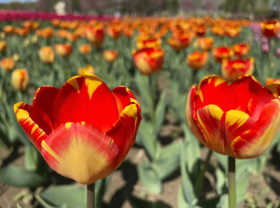 4月13日,由房山区主办、中国乡土艺术协会承办的2023北京郁金香文化节暨房山第一届郁金香文化节在长阳公园开幕。占地900余亩的长阳公园内,包括阿波罗精华、拉里贝拉、班雅、月光等15个品种的10万株郁金香绚丽绽放。