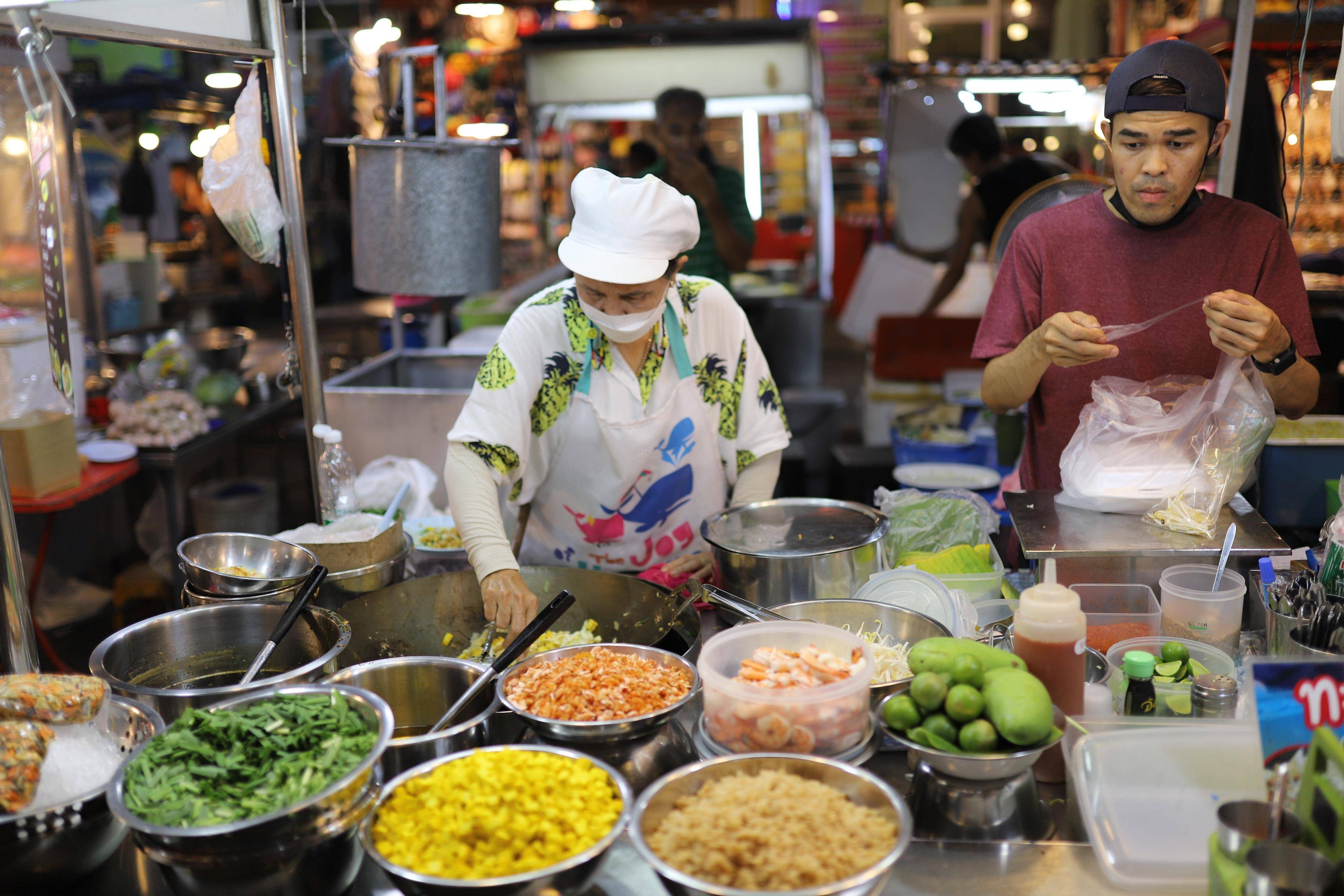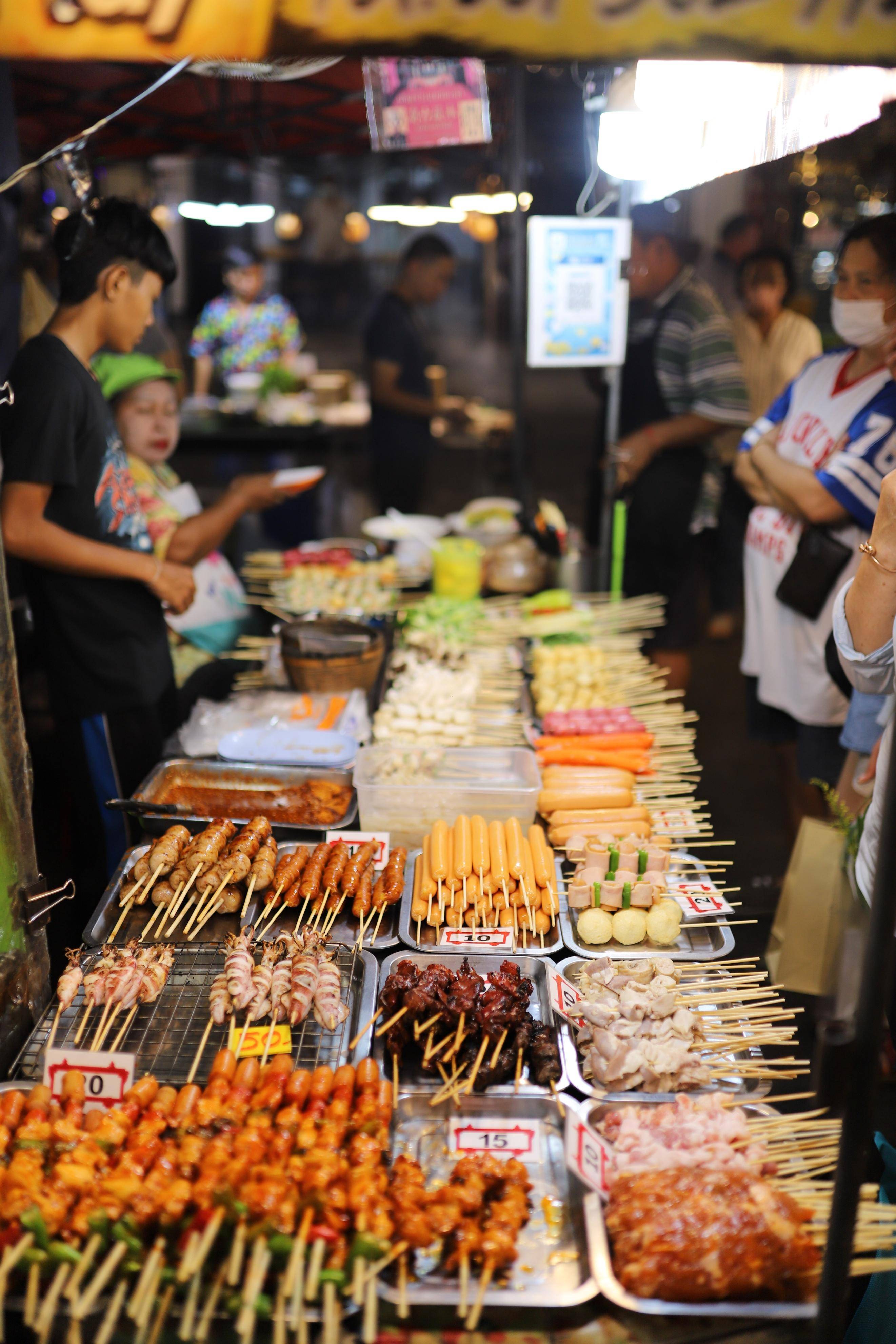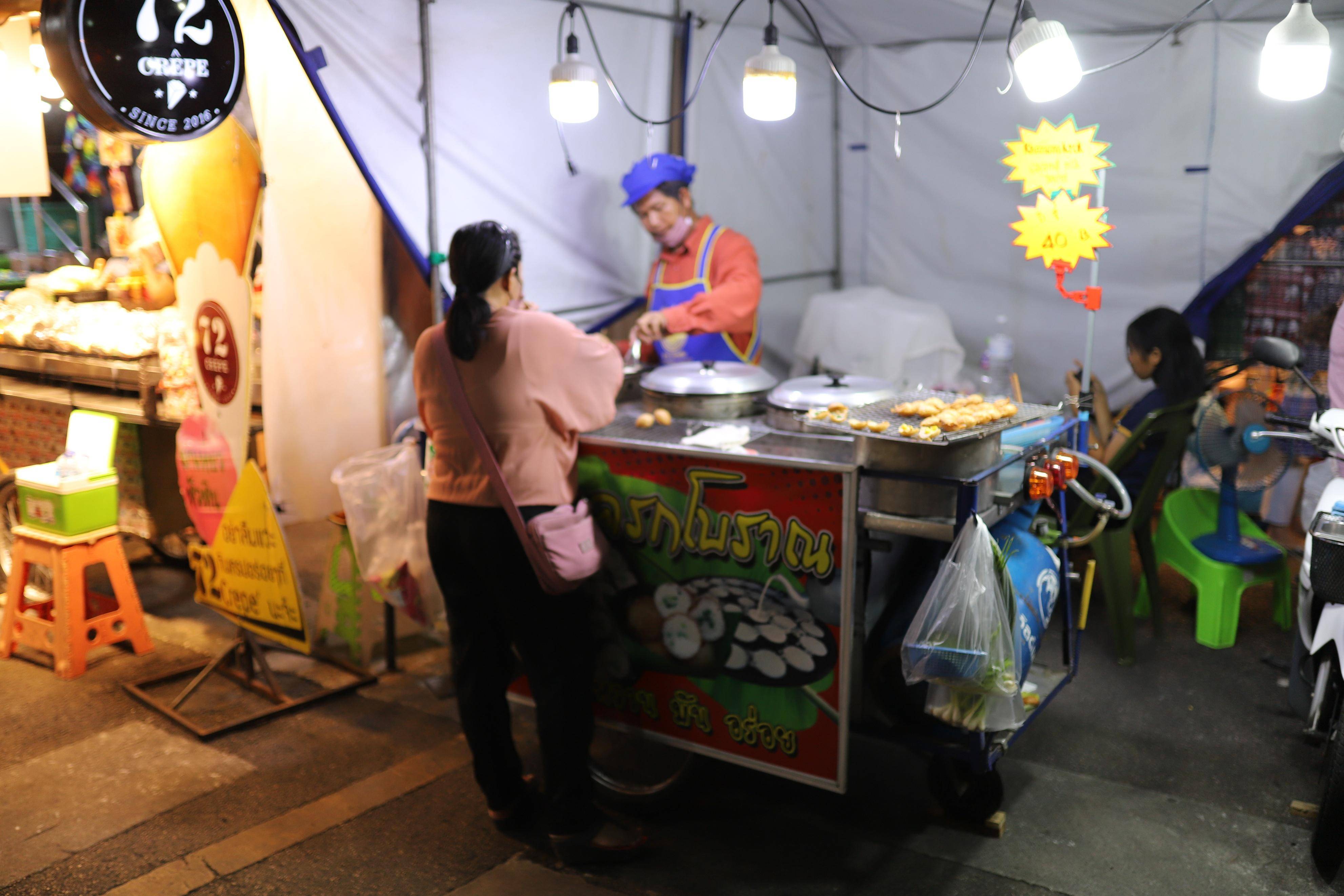 除了购物,华欣夜市还有许多美食摊位,供游客品尝各种美味的泰国和国际美食。