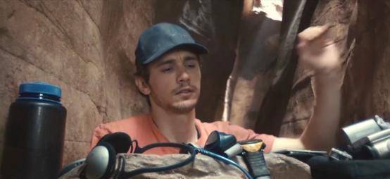 到了周一的白天,阿伦打起精神想着自救的法子,他尝试用身体的重量吊起卡住手的石头,奈何石头卡太死,竟是丝毫不动,他又用绳子当止血带,想割断手臂,可刀钝得连皮都划不开。眼看水壶已经见底,十分虚弱的阿伦晕了过去,梦中下起了暴雨,将整片石缝都淹没了,石头也被水冲送,阿伦逃出生天,可这一切都只是一场梦。