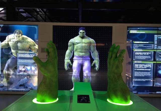偏科普知识(血清、大脑构成这些),唯一互动的地方是可以跟绿巨人合影,合影的时候可以让朋友控制绿巨人的动作。绿巨人的出拳动作非常震撼,感觉整个区域都地震了……