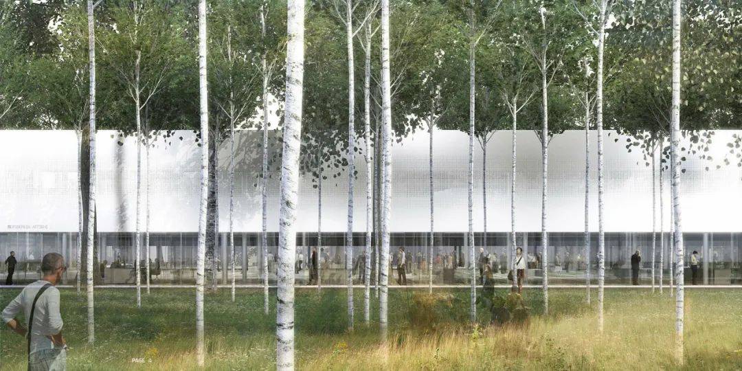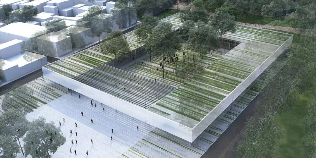 建筑的内部广场与周围的公共空间融为一体,营造出统一的城市环境。外立面采用大玻璃开口,露出支撑绿色屋顶的柱子。建筑结构、绿化和城市组织之间的直接对话是贯穿整个建筑概念的主要设计原则之一,从而形成了种植中庭。体量采用正交的Π形结构,遵循街区的几何形状及其周边特性,与现有环境完美融合,塑造了埃莱夫西纳市的地标建筑。