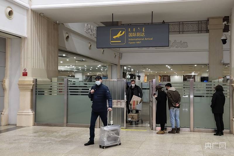 乘坐俄罗斯伊尔航空IO879航班抵达满洲里市的旅客(央广网发 刘欣 摄)