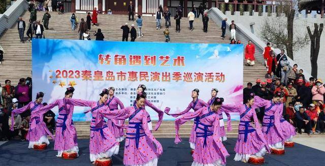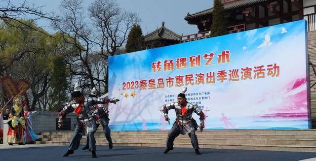 身着秦朝服饰的演员在台上劲舞,身材柔美的女演员挽袖轻舞……4月9日秦皇秋仙海口海港区神仙殿前景区拉开2023秦皇岛市惠民演出音乐季“遇见艺术在转角”巡演首场演出序幕。