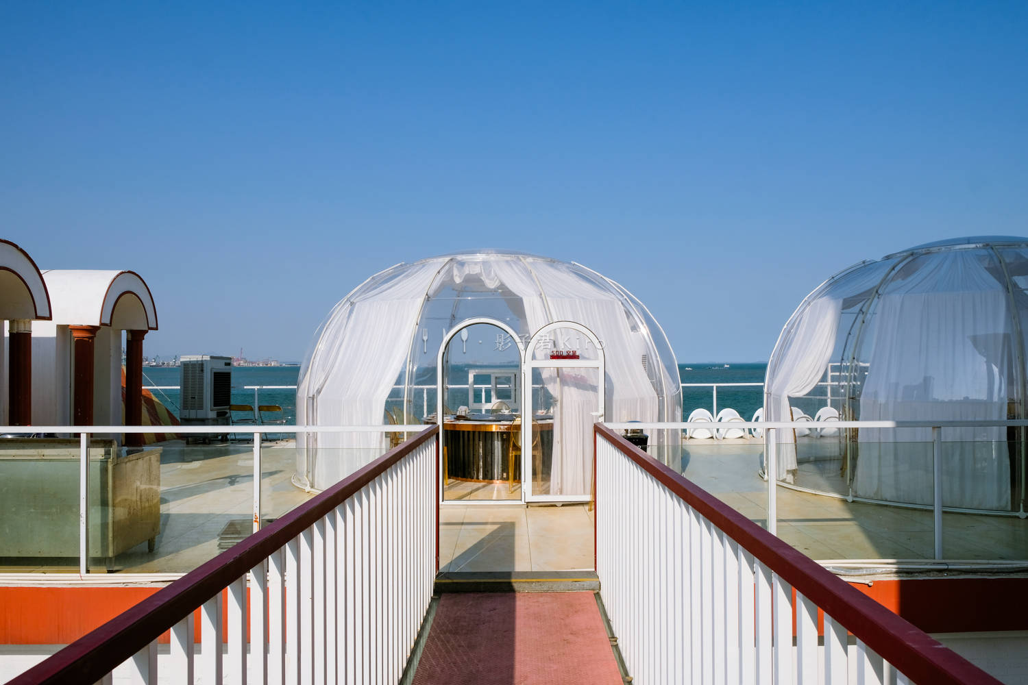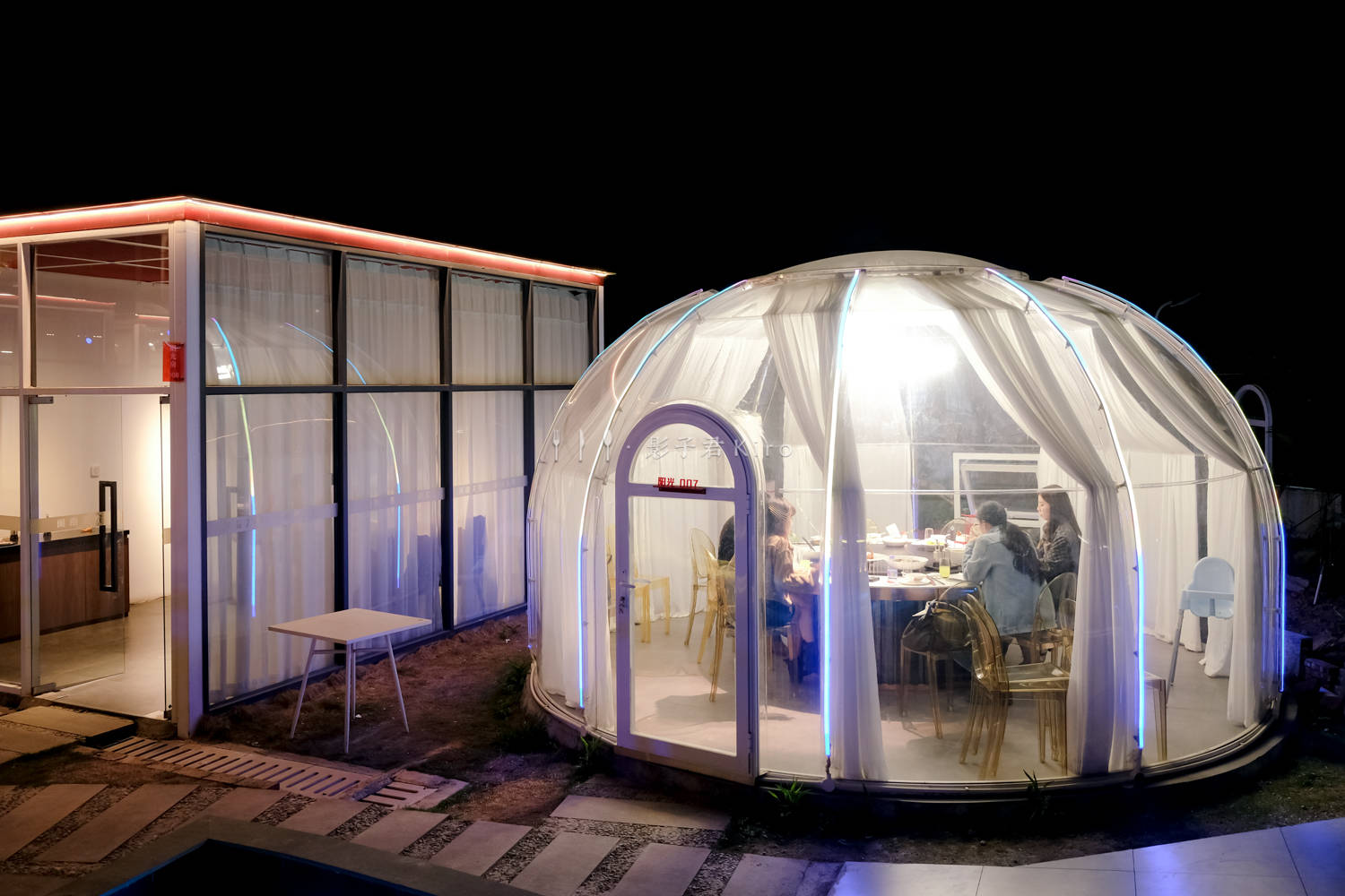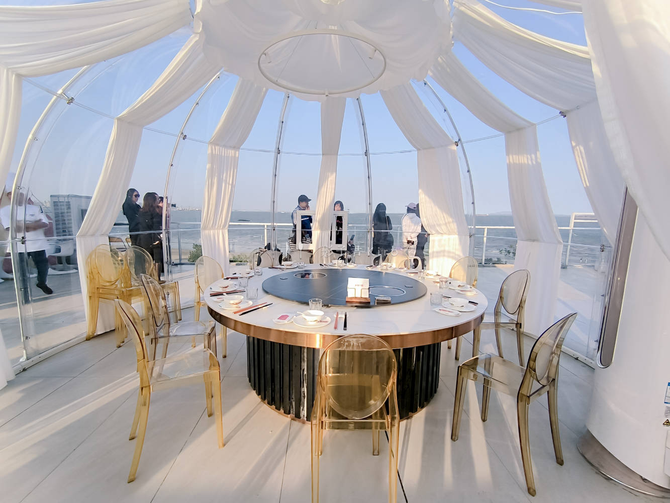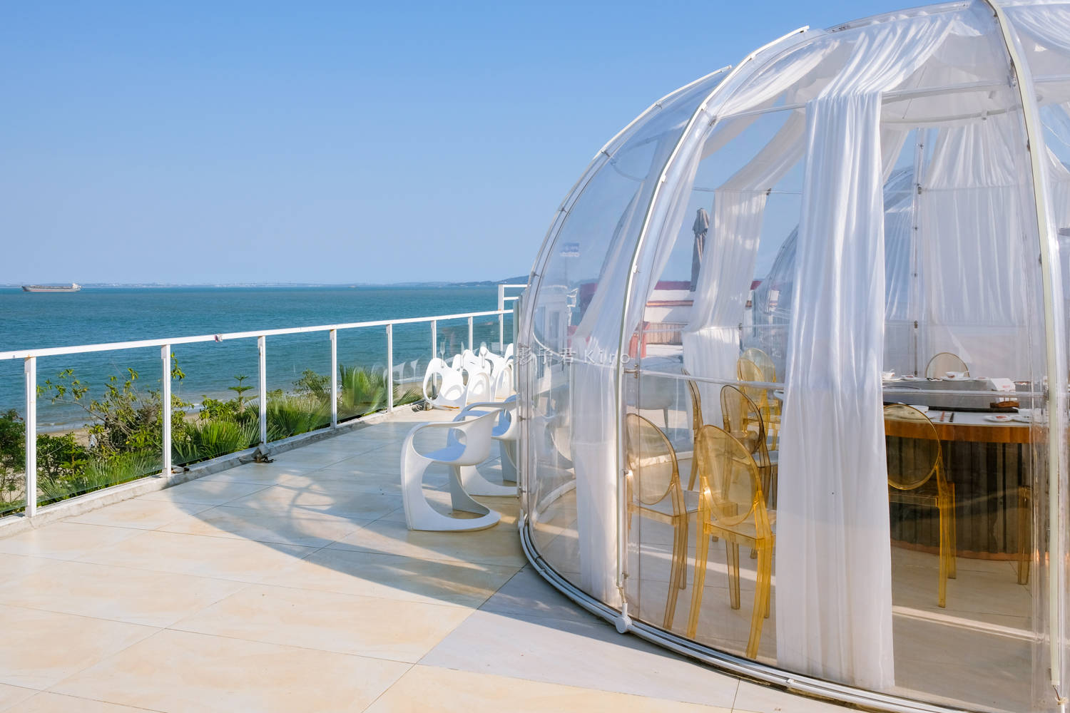 他家的泡泡屋排布在户外区域,我更喜欢这几个位于二楼天台的泡泡屋,坐在里面远眺一线海景,不远处就可以清楚的看到金门两岛和那座连通两岛的大桥,碧海蓝天,真是太惬意了!在屋里在屋外,随手这么一拍,张张都美轮美奂的!